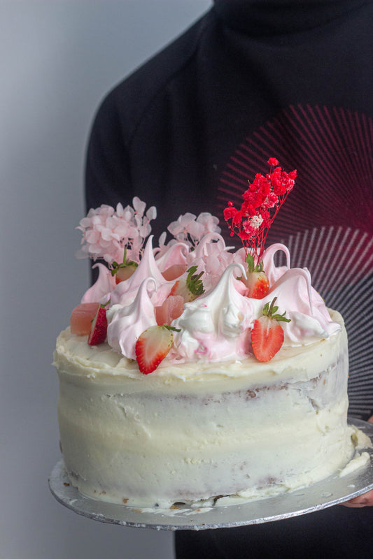 White Chocolate + Strawberry Cake